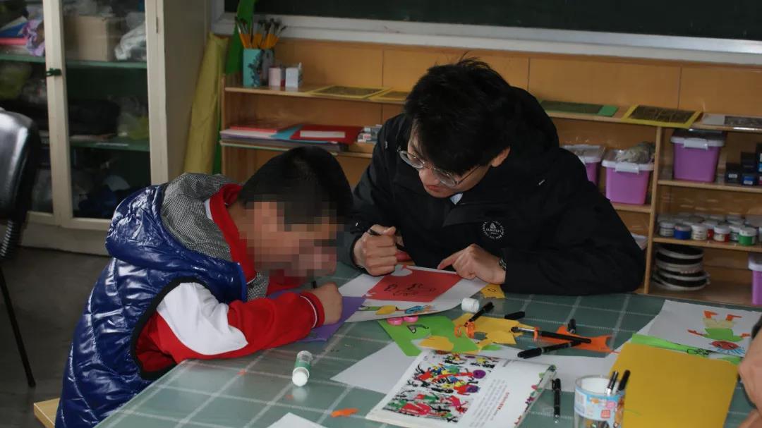 當(dāng)天下午,志愿者們?cè)诶蠋煹闹笇?dǎo)下,參與到音樂、美術(shù)、創(chuàng)意工坊等課堂中,輔助老師進(jìn)行教學(xué)。和孩子們一起學(xué)習(xí)、唱歌、繪畫、訓(xùn)練,觀察并及時(shí)糾正他們的行為,培養(yǎng)孩子們的愛心,加強(qiáng)他們與外界的溝通交流。映在孩子們臉上的純真笑容,以及臨走時(shí)那突如其來的擁抱,是對(duì)志愿者們心靈的一次洗滌。他們的美好感染著我們,希望我們的關(guān)懷能帶給他們更多的溫暖。