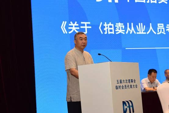 7月29日,中國拍賣行業(yè)協(xié)會五屆六次理事會在北京召開。中拍協(xié)名譽(yù)會長張延華、會長余平、常務(wù)副會長黃小堅、副會長徐勉之、雷敏、苗華甫、王中明、李偉、張力、法勇生、陳志坤、祁志峰、韓濤,秘書長李衛(wèi)東,原中拍協(xié)副會長劉浚年、馬巧嘏等領(lǐng)導(dǎo)在主席臺就坐。中拍協(xié)副會長徐勉之主持。