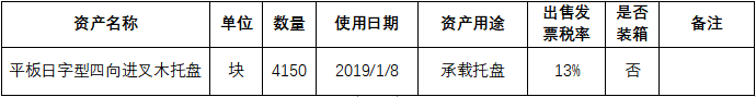 標(biāo)的一:平板日字型四向進(jìn)叉木托盤,起拍價20萬元(含稅),設(shè)備完好。