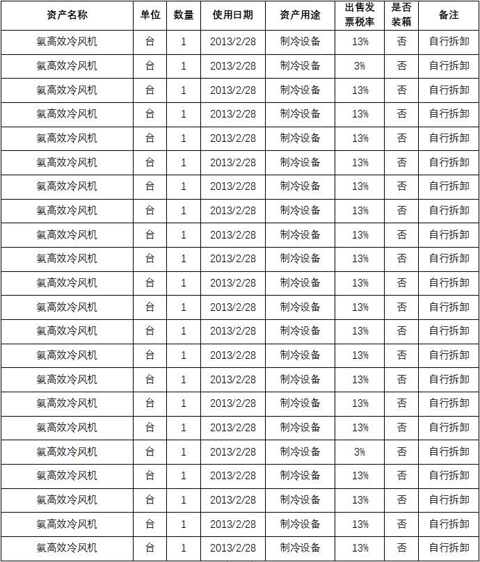 標(biāo)的二:氨高效冷風(fēng)機(jī),起拍價格:136693元(含稅),設(shè)備完好,需自行拆卸。