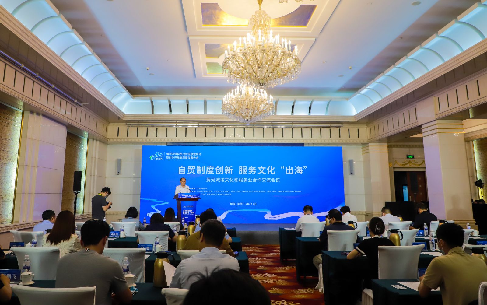 黃河流域自貿(mào)試驗(yàn)區(qū)聯(lián)盟啟動(dòng)暨對外開放高質(zhì)量發(fā)展大會(huì)--黃河流域文化和服務(wù)業(yè)合作交流會(huì)2022年8月23日下午在山東大廈濟(jì)南廳舉辦。中國(河南)自由貿(mào)易試驗(yàn)區(qū)開封片區(qū)管委會(huì)、中國(陜西)自由貿(mào)易試驗(yàn)區(qū)西咸新區(qū)管委會(huì)有關(guān)負(fù)責(zé)同志,山東省委宣傳部、山東省商務(wù)廳、山東省文化和旅游廳有關(guān)負(fù)責(zé)同志,以及濟(jì)南市有關(guān)部門負(fù)責(zé)同志、中國(山東)自由貿(mào)易試驗(yàn)區(qū)濟(jì)南片區(qū)管委會(huì)有關(guān)負(fù)責(zé)同志,開封片區(qū)、西咸新區(qū)、濟(jì)南片區(qū)重點(diǎn)企業(yè)代表參加活動(dòng)。金諾國拍集團(tuán)總裁位琳參加大會(huì)。