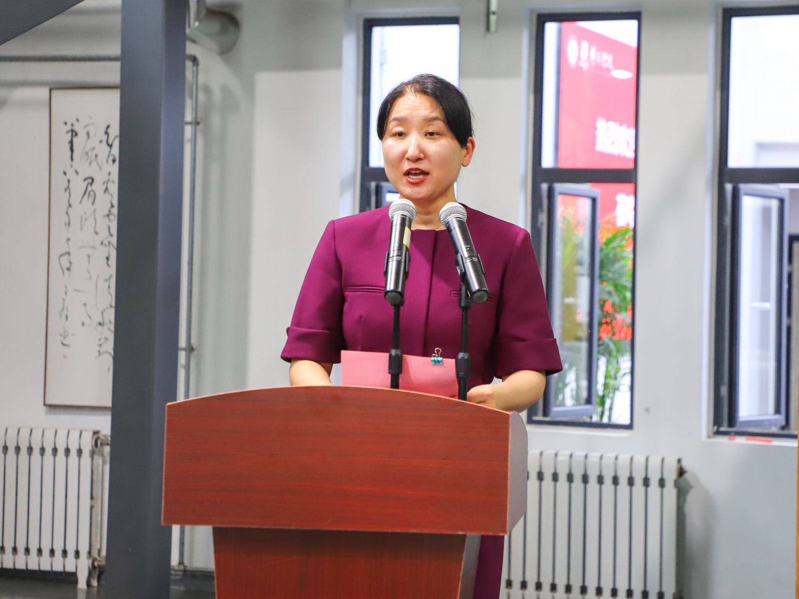 山東財經(jīng)大學藝術(shù)學院黨委書記楊揚致辭,她表示一年一度的藝術(shù)學院藝術(shù)品競拍會即將精彩呈現(xiàn),首先對支持藝術(shù)學院藝術(shù)實踐活動的各位領導嘉賓和社會各界人士表示衷心的感謝和熱烈歡迎。在社會各界和學校相關部門的支持幫助下,競拍活動已成為藝術(shù)學院本科教學過程中的一個亮點,同時已成為實踐課堂和校園文化不可或缺的重要組成部分。較于往屆,本屆藝術(shù)品競拍活動體現(xiàn)出明顯的優(yōu)化與升級。同時,一場精彩的拍賣會需要拍賣師和競拍人的積極互動,大家每一次踴躍地舉牌和熱情地喊價,都是對青年學子藝術(shù)創(chuàng)作的充分肯定和莫大鼓勵,也是對藝術(shù)學院教學工作的巨大支持。再次感謝大家的光臨,讓我們共同期待競拍會的精彩呈現(xiàn)!