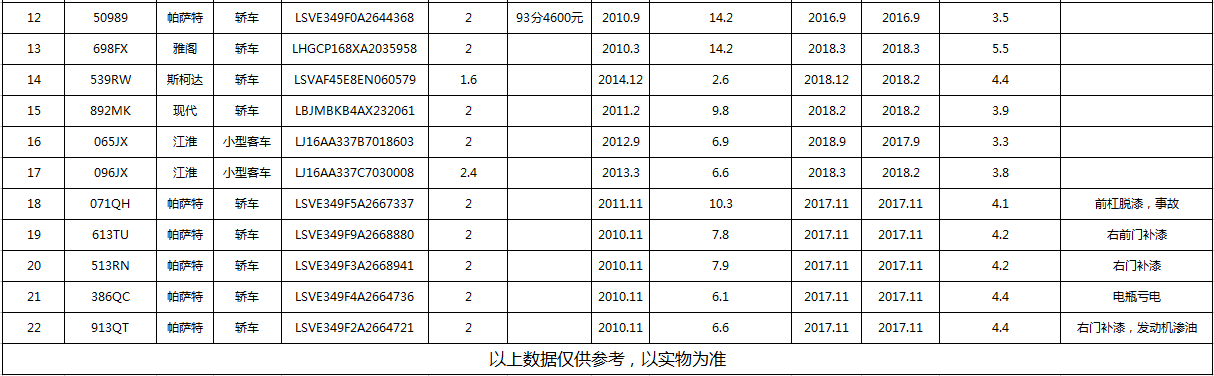 公務用車一宗,品牌類型有:奔馳、邁騰、帕薩特、雅閣等共計22輛,詳見標的清單。